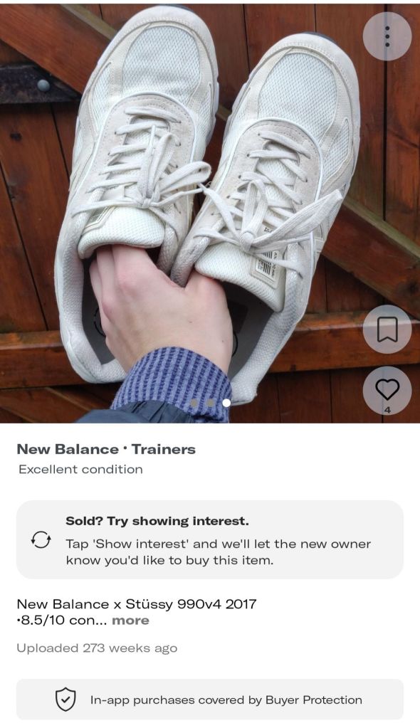 However, with luck on my side, a colleague at work asked me if I wanted his old pair of UK12s as they were too big for him. I said something along the lines of “absolutely, how much do you want for them?”, to which he replied, “Nothing, you can have them for free”. He giveth and he taketh away. When I got them in hand, the pair was a little more cooked than expected and was in fact a UK11.5. Regardless, I was happy that I had the Stussy x New Balance 990v4s back in my possession.