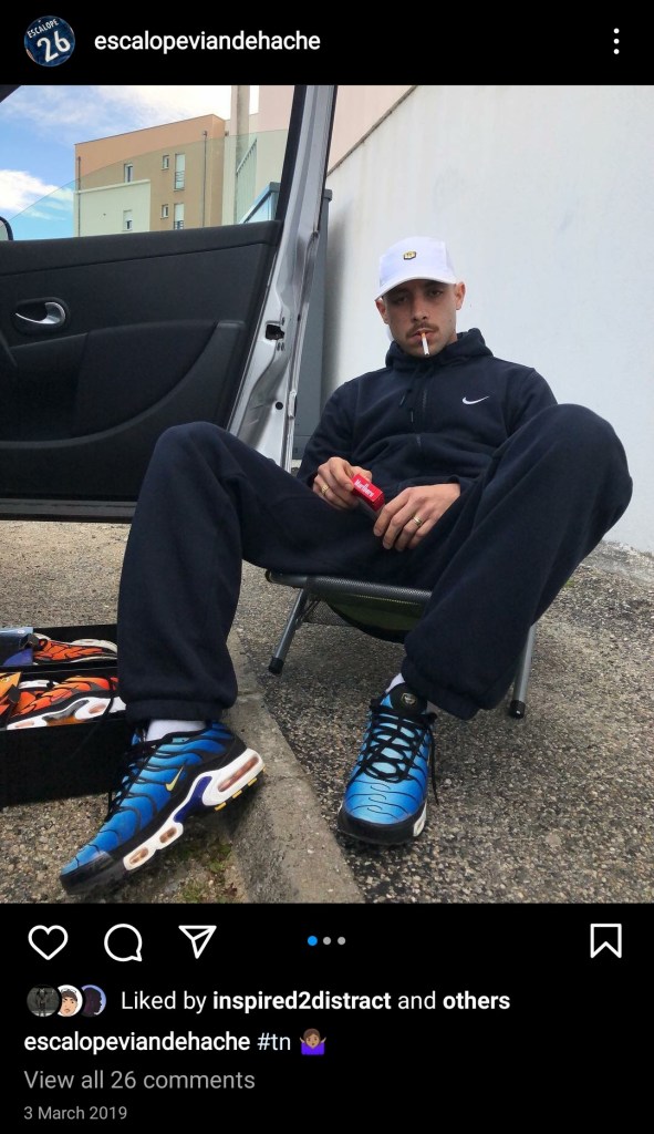 I first came across this style from the infamous escalopeviandehache. What does that mean? You’re probably thinking. Well, according to a French Columbia Buyer, it translated to “Minced Meat”. This is an apt name for the French-Tunisian as he’s always churning out quality content. It seems like every day of the week that his boys are popping wheelies on dirt bikes, graffing up stationary trains and posted up on camp out chairs (less hardcore but equally as cool). That was back when he was rocking a measly 7K followers. He must have realised the power of his aesthetic as he now, as of me writing this, has 101K followers. No doubt people caught onto his authentic street lifestyle of football jersey’s and Nike TN’s. Whilst I’m not saying he invented the aesthetic, he is definitely one of its pioneers.